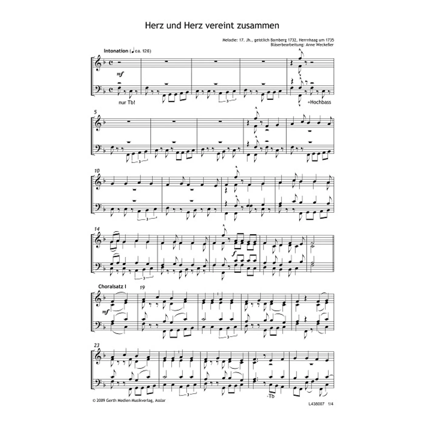 Herz und Herz vereint zusammen (traditionell, Bläser, Bläserpartitur, Partituren, vierstimmig) Anne Weckeßer (Bearbeiter) | traditionell, Bläser, Bläserpartitur, Partituren, vierstimmig | 2,50 € |