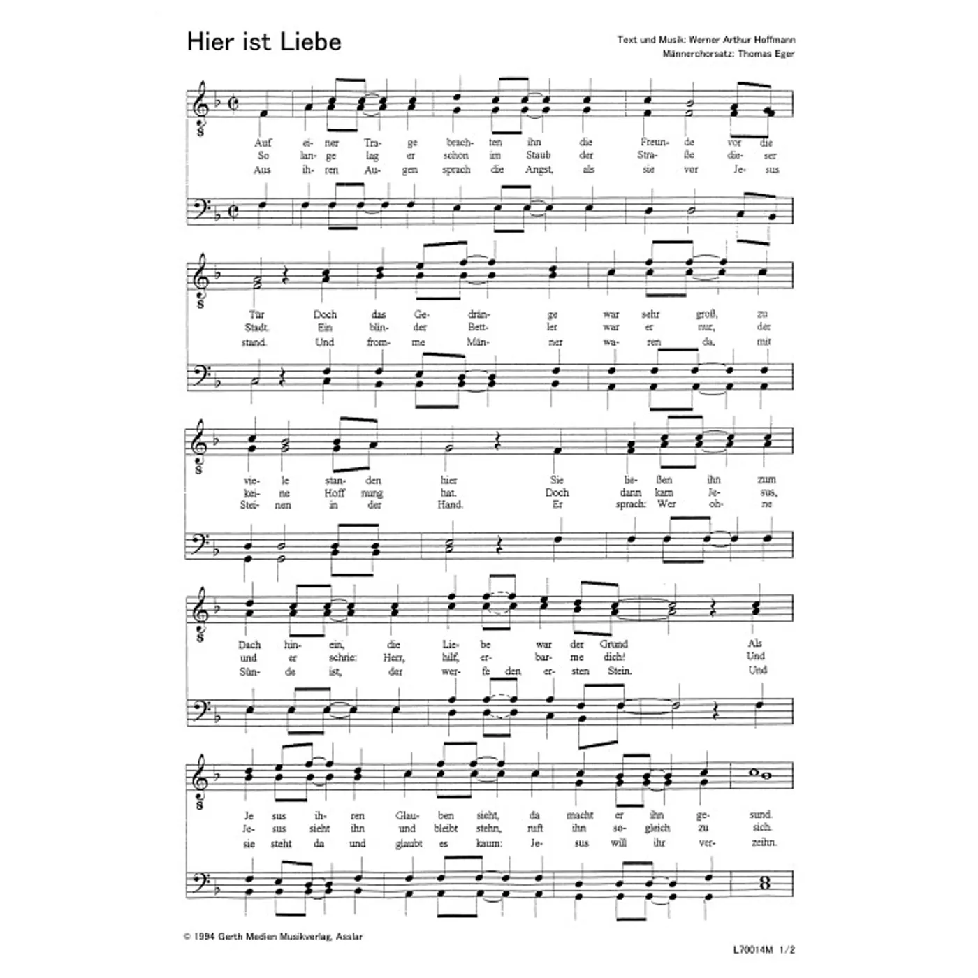 Hier ist Liebe (diese Variante haben Sie gerade ausgewählt) (Männerchor, vierstimmig) Werner A. Hoffmann (Text, Komposition), Thomas Eger (Bearbeiter) |