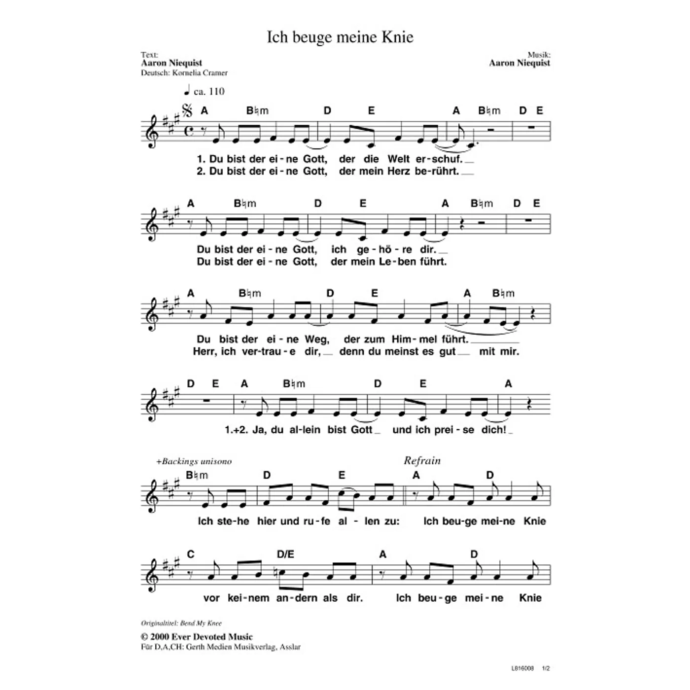 (einstimmig, mit Akkorden, A-Dur) Aaron Niequist (Komposition, Text), Konny Cramer