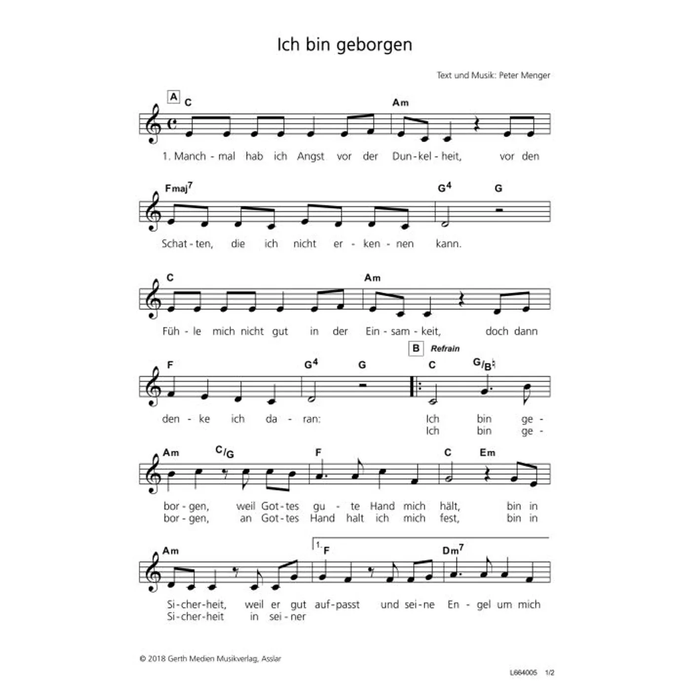 Ich bin geborgen (diese Variante haben Sie gerade ausgewählt) (einstimmig, mit Akkorden, C-Dur) Peter Menger (Komposition, Text) |