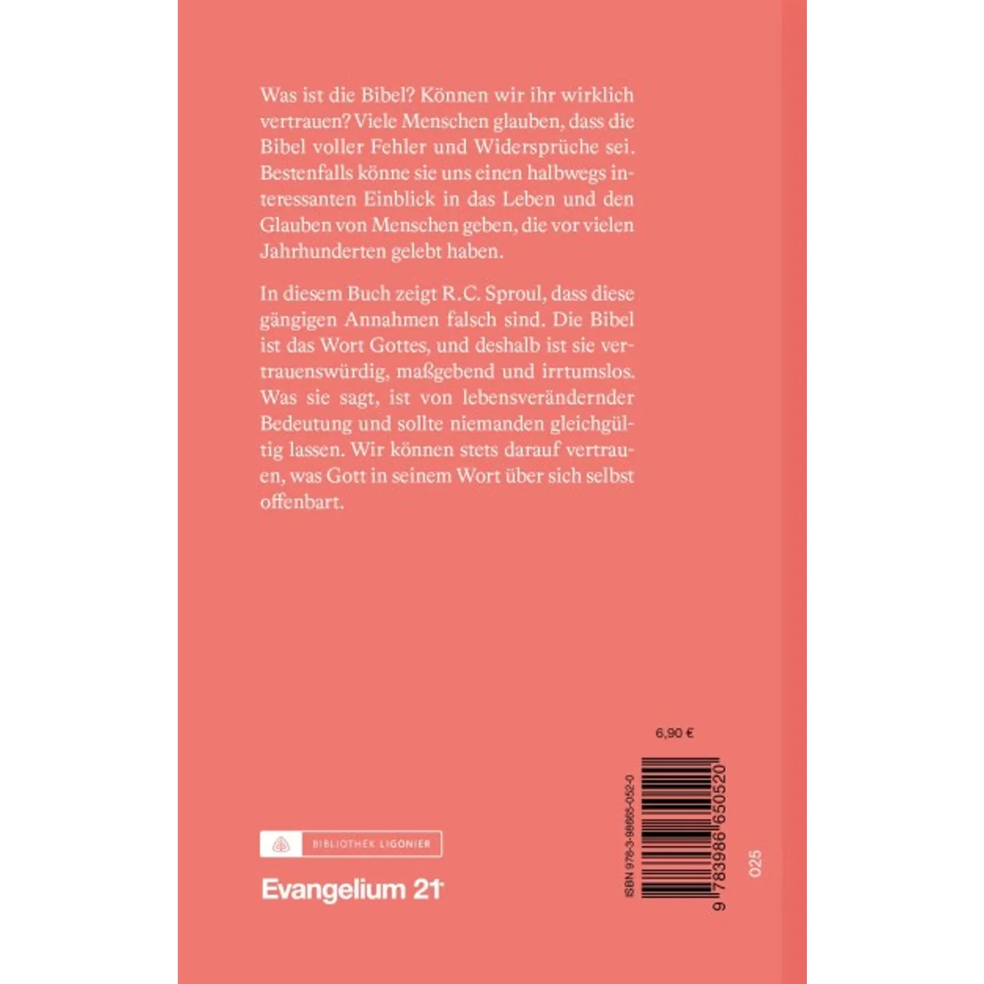 R. C. Sproul geht in diesem kurzen Buch darauf ein was die Bibel über sich selbst und die Glaubwürdigkeit sagt. Er geht aber auch auf Mythen ein, die über die Zusammenstellung des biblischen Kanons kursieren und klärt sie auf. Zum Ende hin erklärt er, wie jeder Leser selbst die Vertrauenswürdigkeit der Bibel überprüfen kann und nennt Gründe für mögliche Zweifel an der Bibel.