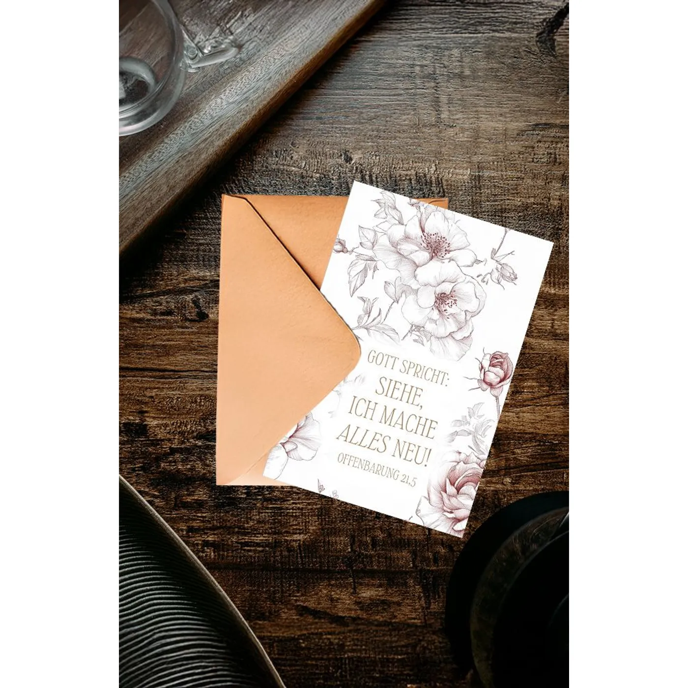 Versende inspirierende Grüße mit dieser stilvoll gestalteten Faltkarte aus dem Bolanz Verlag zur Jahreslosung 2026. Der Bibelvers aus Offenbarung 21,5: „Gott spricht: Siehe, ich mache alles neu!“ ist der Mittelpunkt der Karte und wird von filigran illustrierten Rosen umrahmt. Das zarte Motiv steht sinnbildlich für Erneuerung, Wachstum und die Schönheit von Gottes Schöpfung.