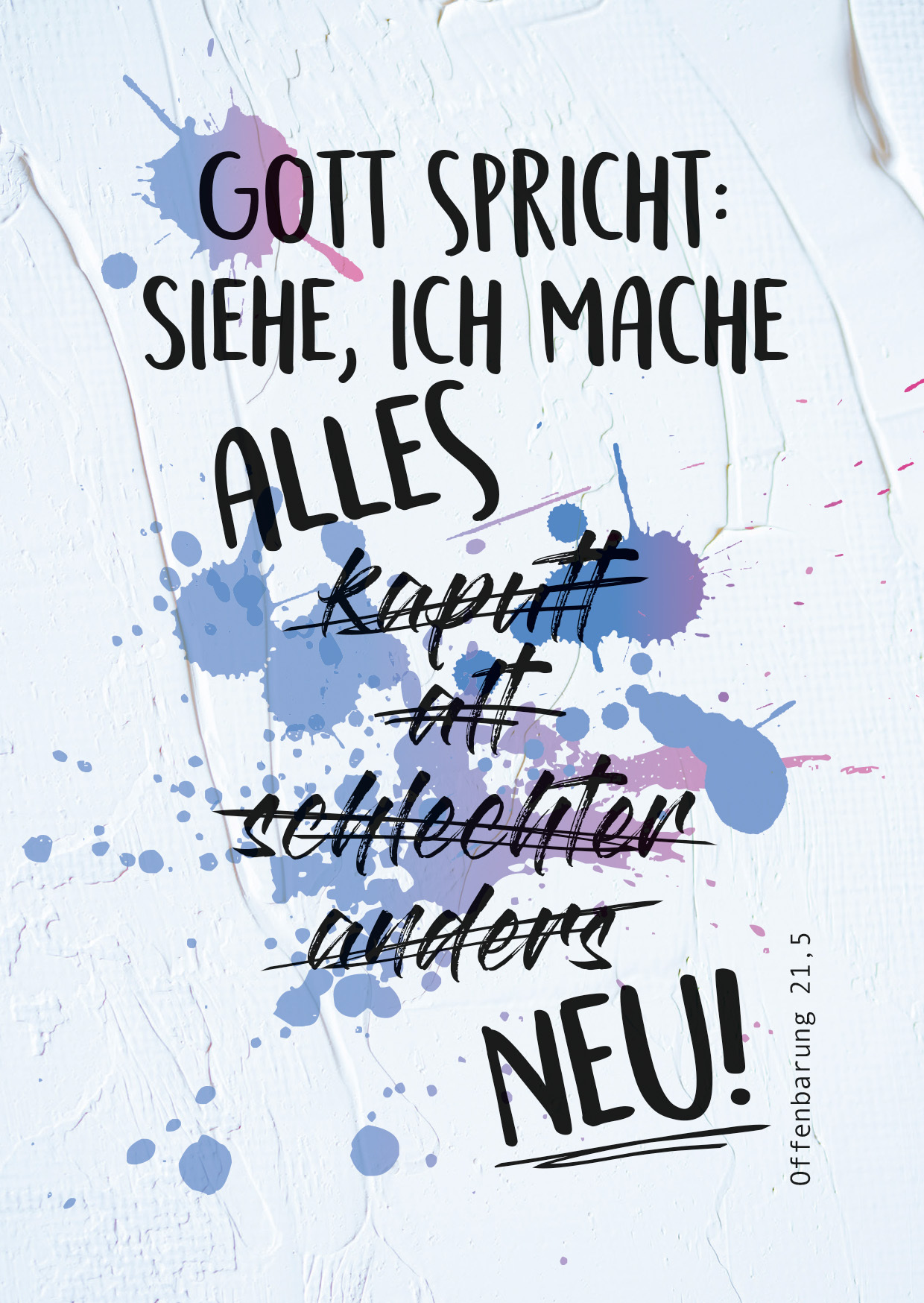 Ich bevorzuge eine künstlerisch-herausfordernde Darstellung der Jahreslosung ,welche zeigt , das Gotteswort in die jetzige Zeit passt !