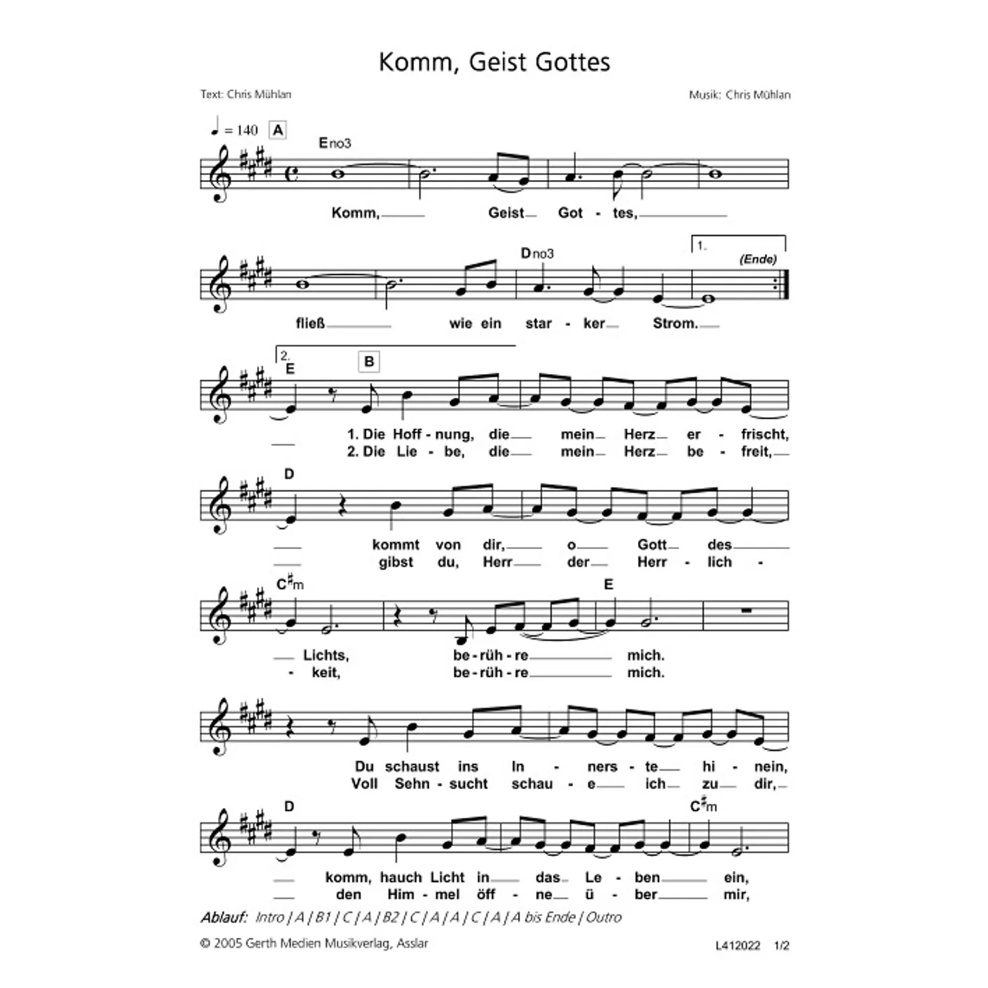 Komm, Geist Gottes (diese Variante haben Sie gerade ausgewählt) (einstimmig, mit Akkorden, E-Dur) Chris Mühlan (Komposition, Text) |