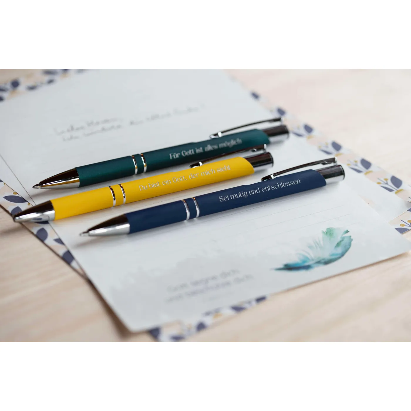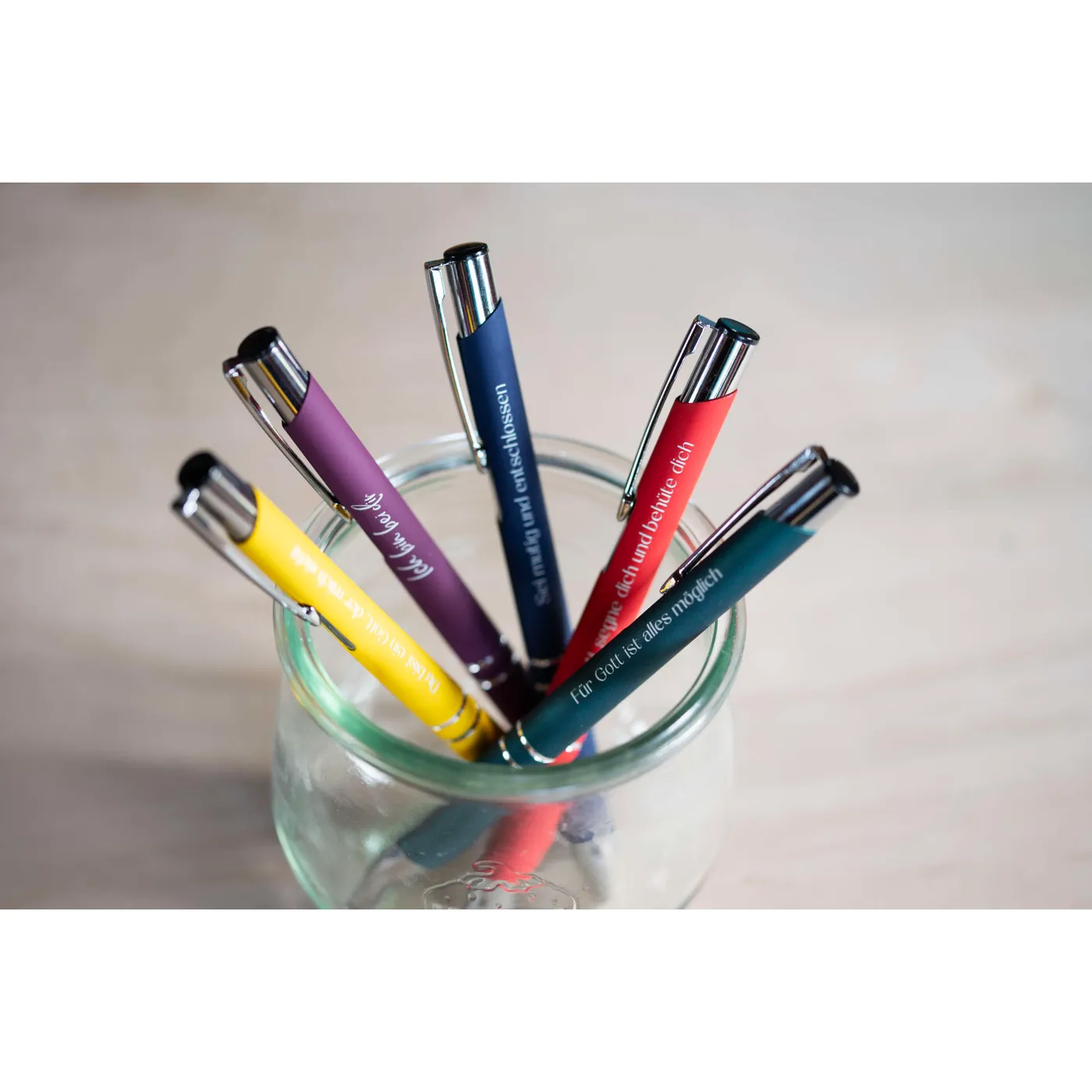 das finde ich sehr passend für alle Lebenstage und beim schreiben vergesse ich nicht Gottes Zusage an mich. Ich empfehle diesen Kugelschreiber sehr gerne weiter