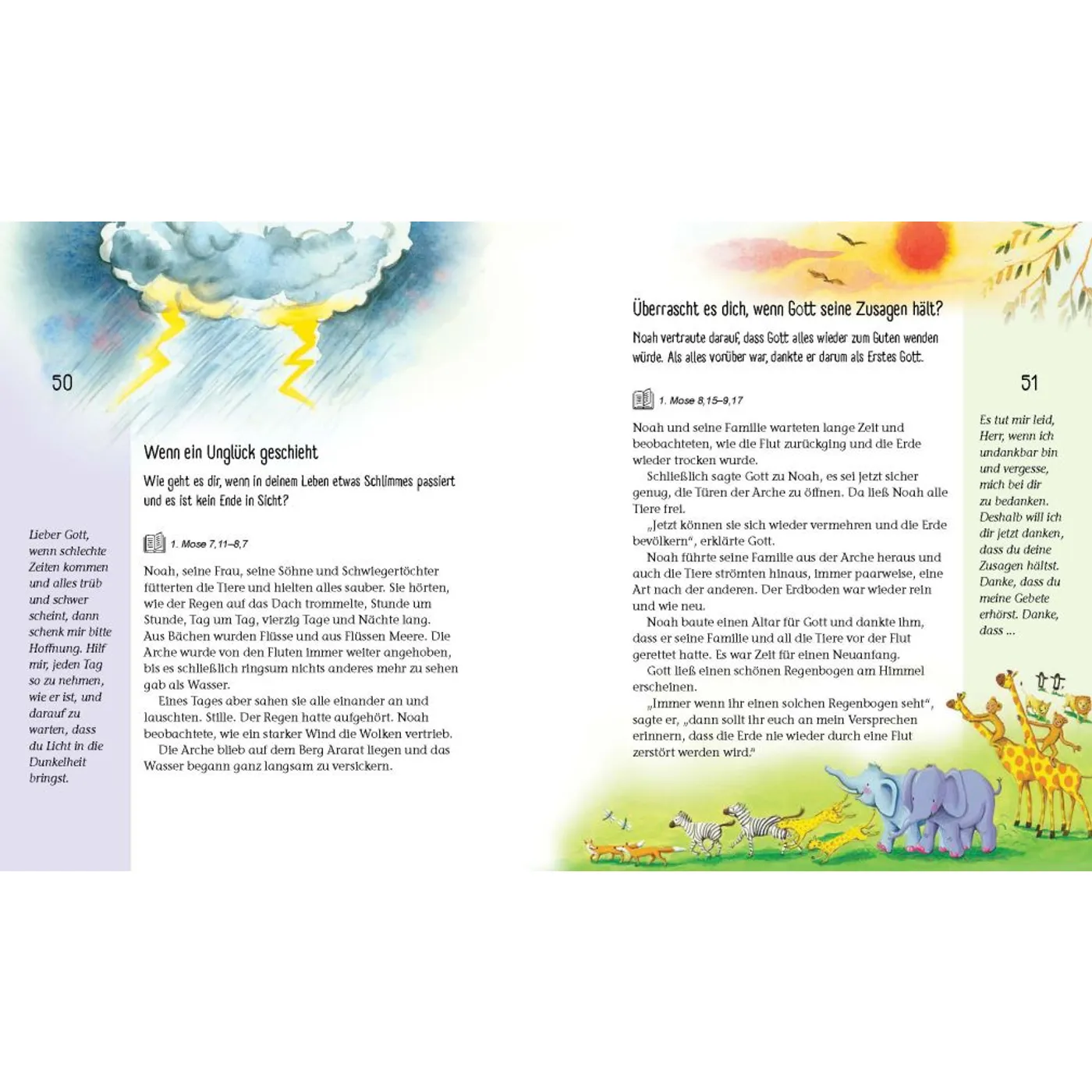 Im ersten Augenblick war ich etwas irritiert, weil ich so einen Aufbau eines Kinderandachtsbuches nicht kannte. Nachdem ich mich jedoch rein gelesen habe, war ich total hingerissen davon.