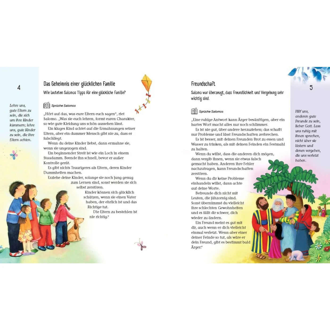 An jedem Tag im Jahr finden sich die unterschiedlichsten Themen, die nicht nur zum Nachdenken anregen, sondern auch als Ermutigung dienen. Jeder Tag ist mit einer prägnanten Überschrift, einer kurzen Zusammenfassung des Themas, sowie dem Bibeltext selbst versehen. Außerdem enthält er ein kurzes Gebet, das man wunderbar mit den Kindern gemeinsam beten kann.