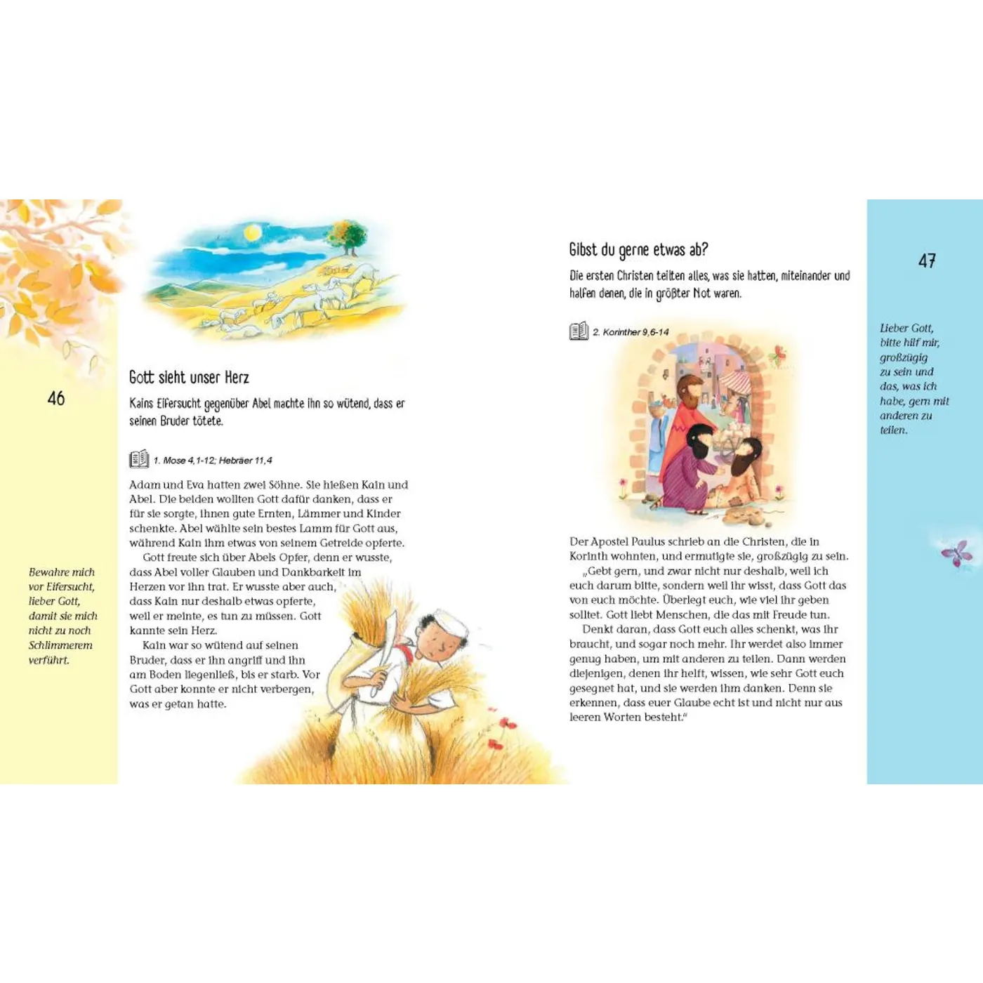Besonders hervorzuheben sind die Illustrationen. Die Illustrationen schaffen es, die Aufmerksamkeit der Kinder zu gewinnen und ihre Neugier zu wecken, während sie gleichzeitig die Botschaften der Bibel auf kreative Weise vermitteln.