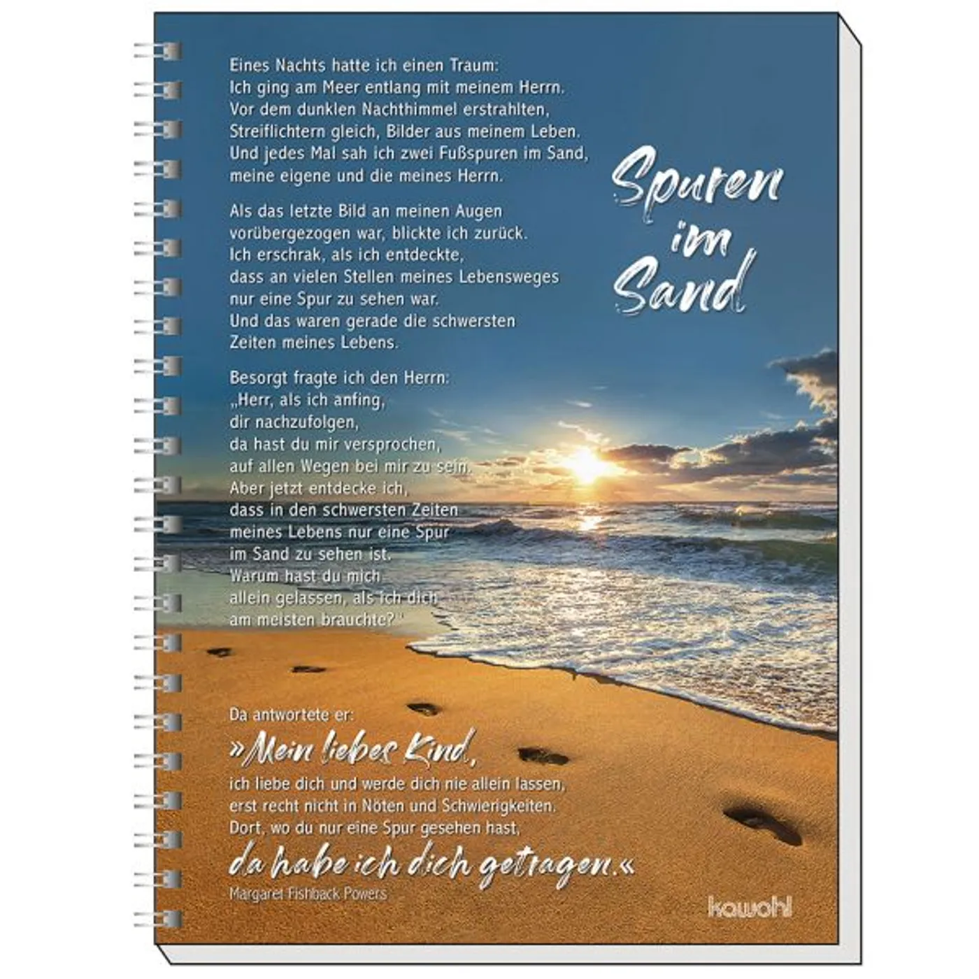 Aber jetzt entdecke ich, dass in den schwersten Zeiten meines Lebens nur eine Spur im Sand zu sehen ist. Warum hast du mich allein gelassen, als ich dich am meisten brauchte?