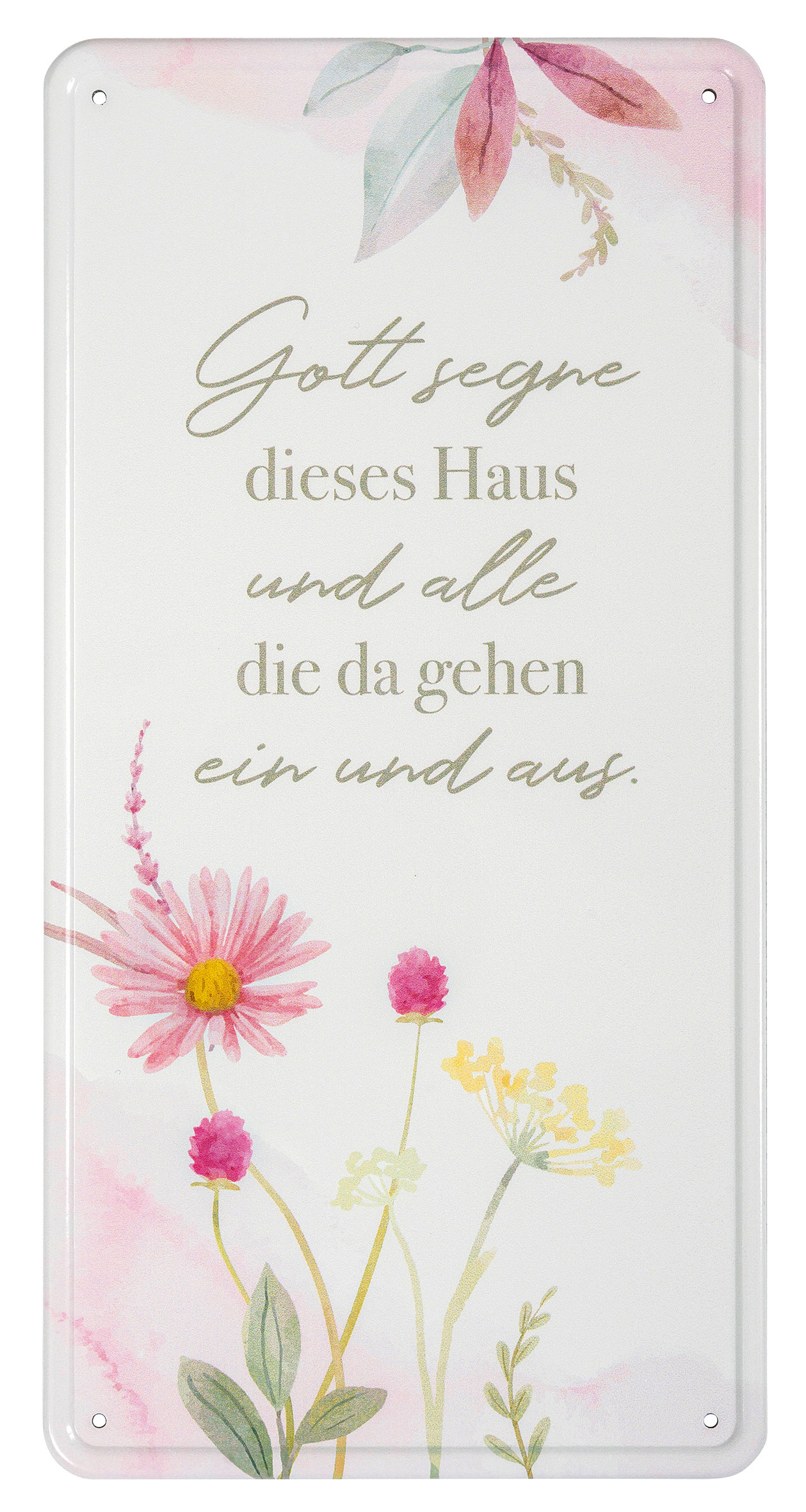 Aluminiumschild mit hübschen, dezenten Blumendesign und Segensspruch.