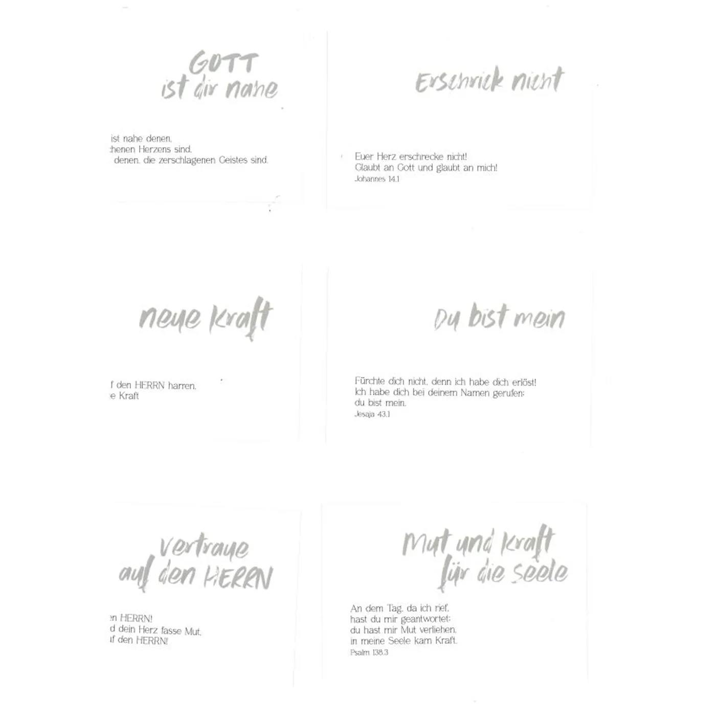 Entdecke die inspirierenden Kärtchen "Mutmacher Mut für Dich" , die dazu entworfen wurden, um inmitten des Alltagsstresses die wichtigsten Botschaften nicht aus den Augen zu verlieren. Diese 10 liebevoll gestalteten Kärtchen sind perfekt geeignet, um Dir und Deinen Mitmenschen Mut zuzusprechen, Trost zu spenden und einander zu segnen.