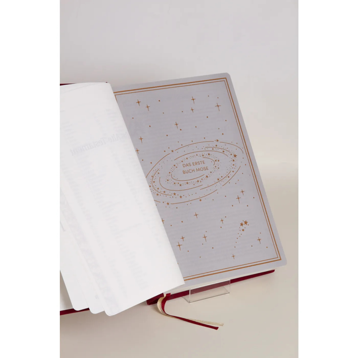 „Eine Bibel wie ein alter Buchklassiker, bei der es sich direkt bedeutsam anfühlt, wenn man die Buchdeckel mit angehaltenem Atem öffnet und die Worte förmlich einatmen kann und weiß: Man hat etwas unglaublich Wertvolles in der Hand.“