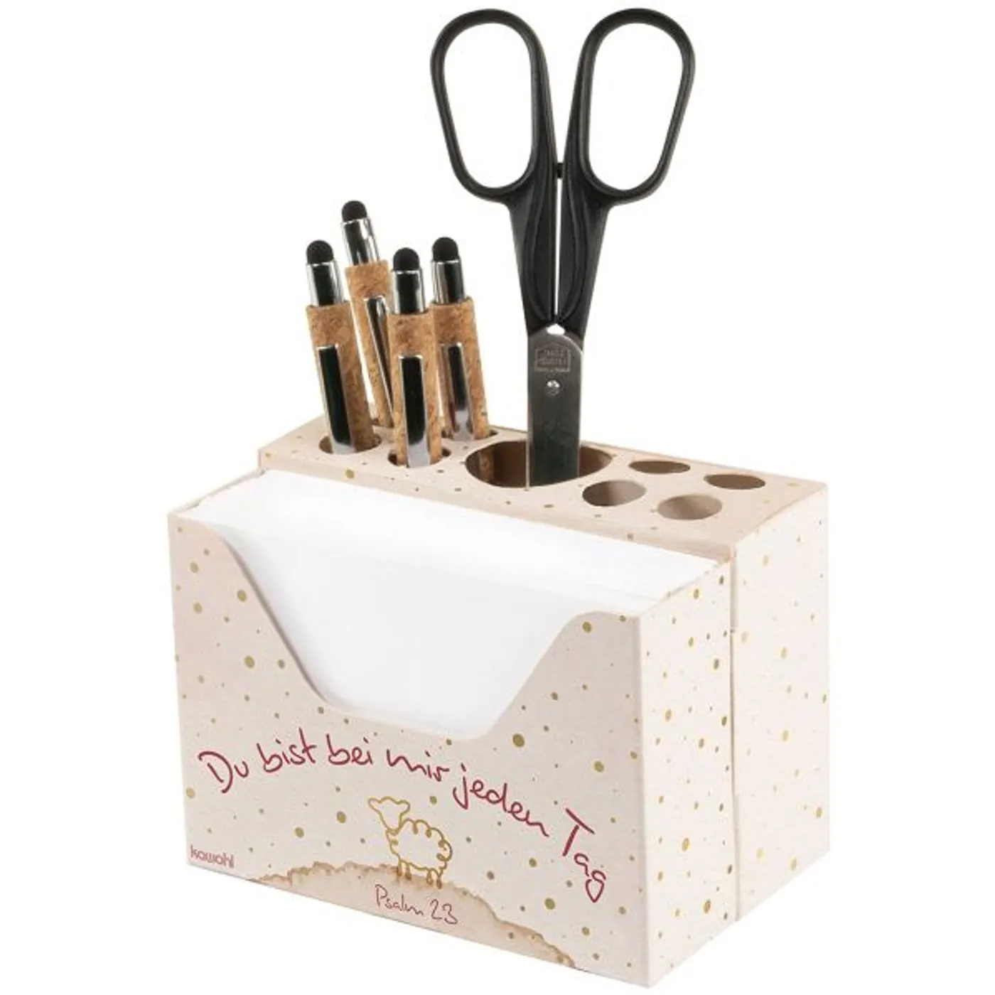 Zweiteilige Zettel-Box mit Stiftehalter aus Karton