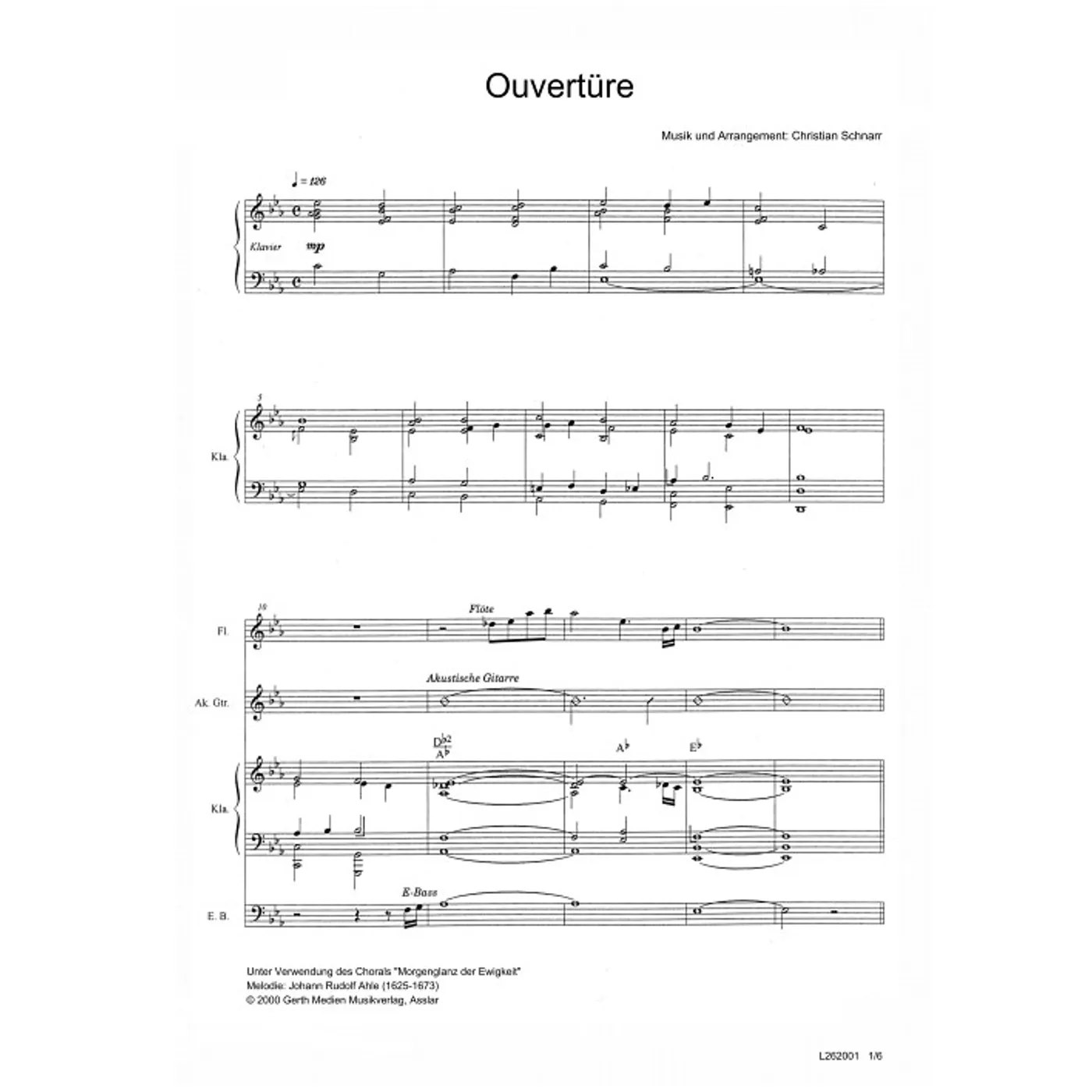 Ouvertüre (nach Morgenglanz der Ewigkeit) (diese Variante haben Sie gerade ausgewählt) (Kantate, Klavier, Orchester, mit Akkorden, Es-Dur) Johann Rudolf Ahle (Komposition), Christian Schnarr (Bearbeiter) |