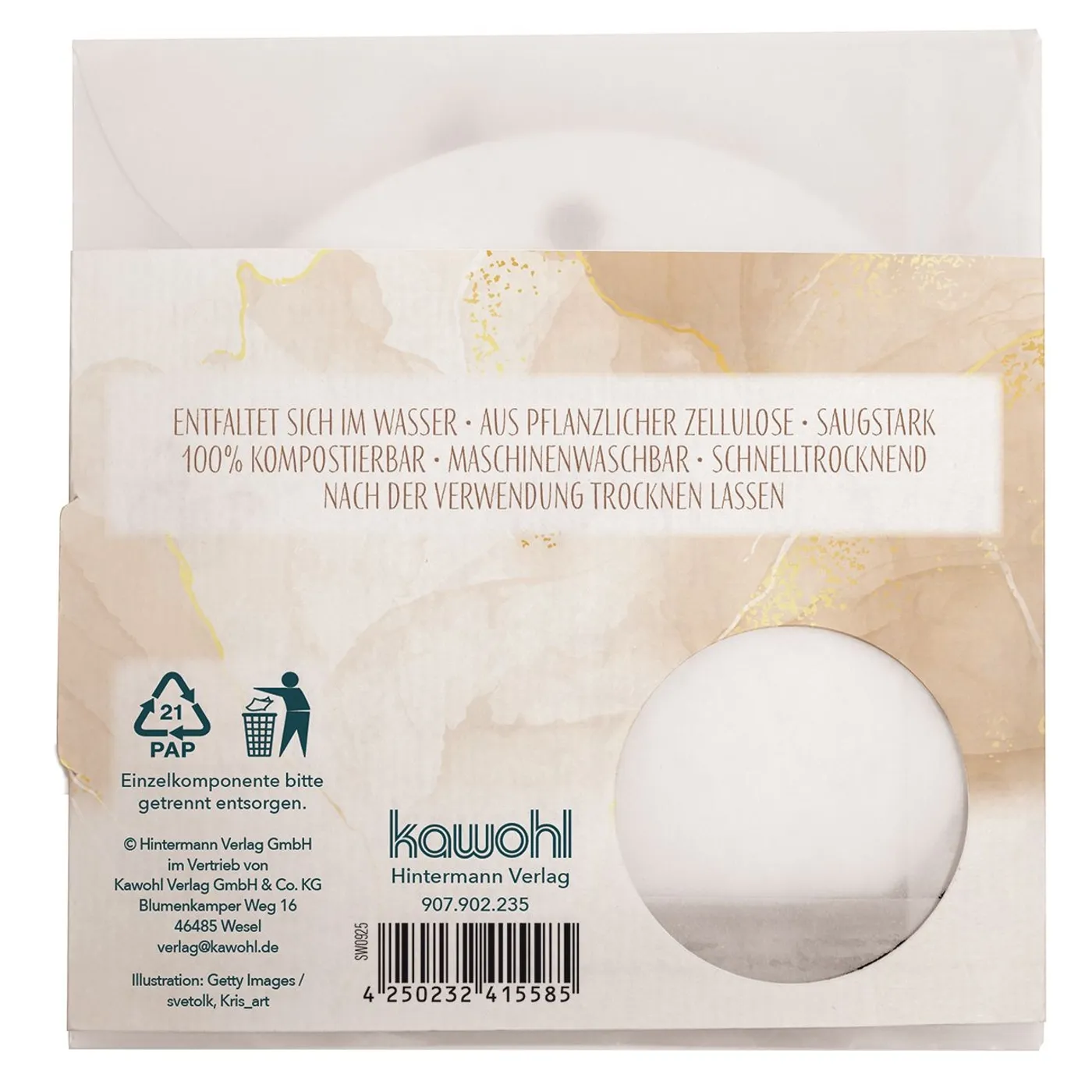 Hübscher Schwamm mit Wow-Effekt! Das dünne Material entfaltet sich bei der ersten Benutzung im Wasser. Es besteht aus rein pflanzlicher Zellulose, ist saugstark und zu 100% kompostierbar.