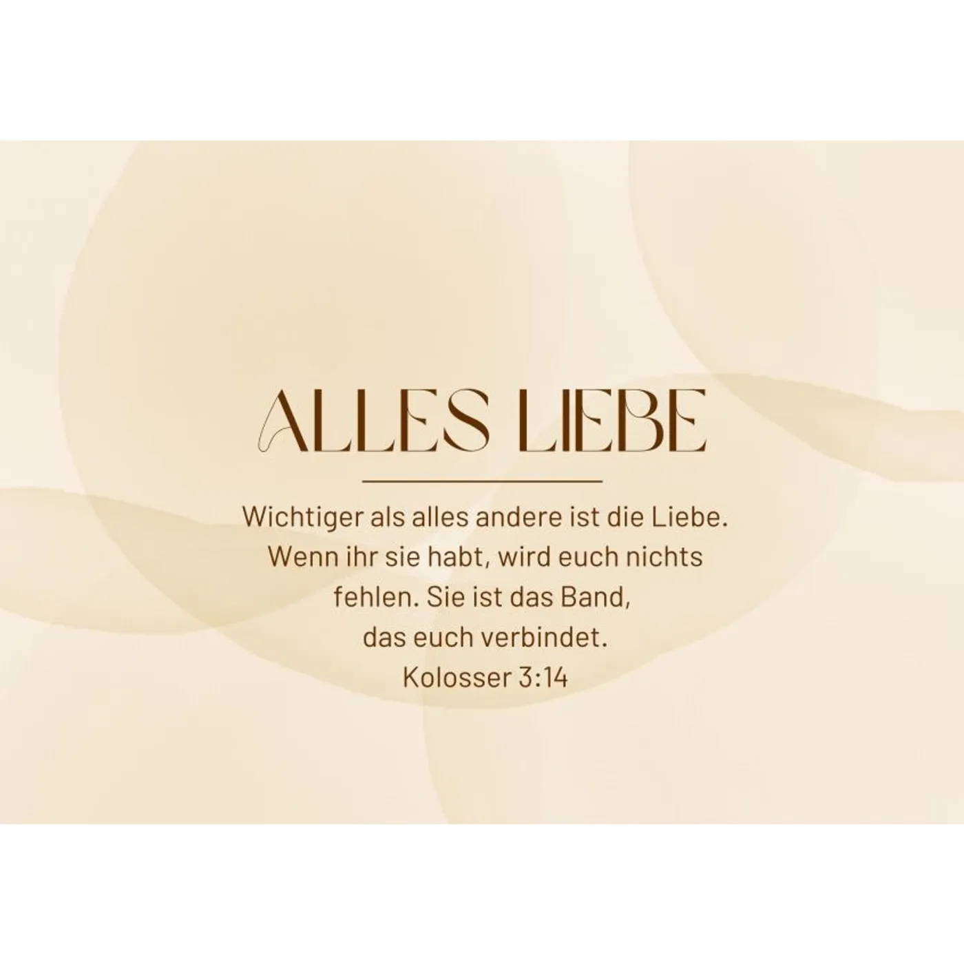 Wichtiger als alles andere ist die Liebe. Wenn ihr sie habt, wird euch nichts fehlen. sie ist das Band, das euch verbindet. Kolosser 3,14