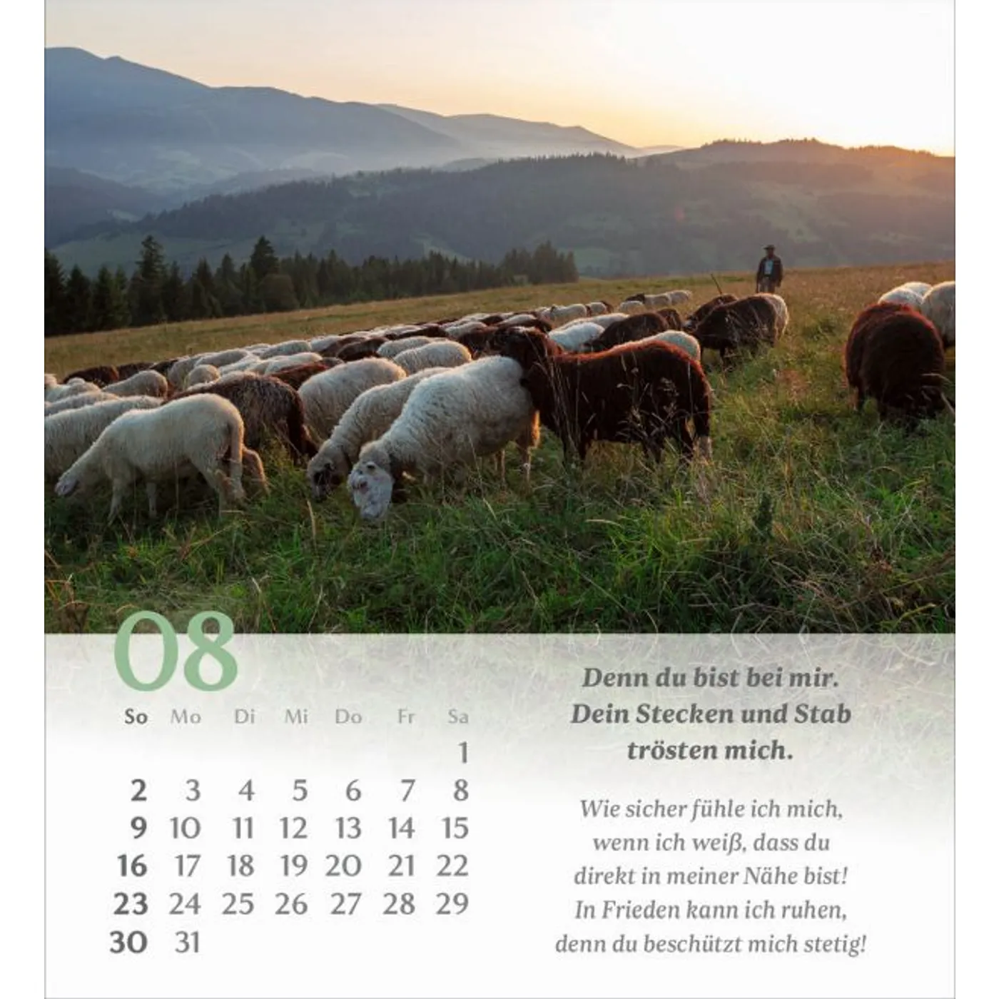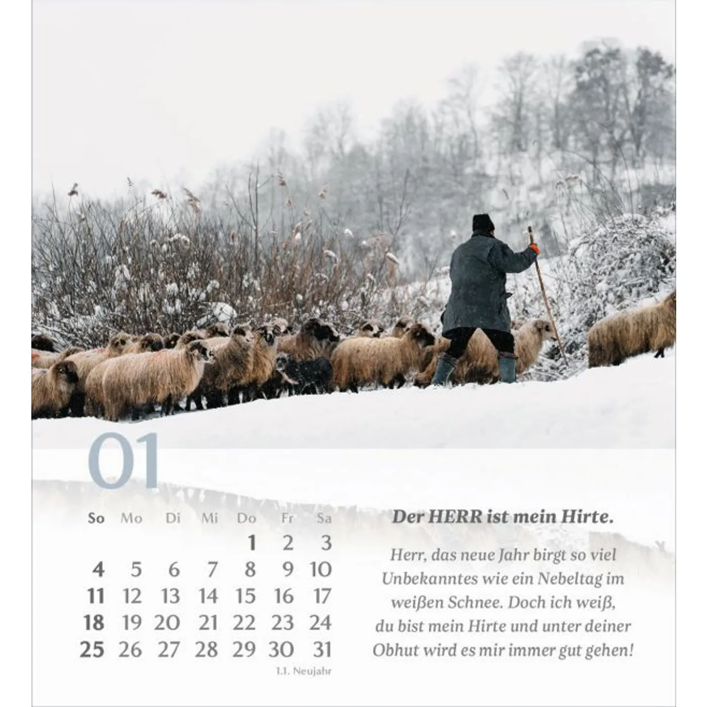 Dieser Tischkalender eignet sich nicht nur für Dich selbst, sondern ist auch ein wunderbares Geschenk, um anderen die ermutigenden Gedanken aus Psalm 23 näherzubringen. Außerdem ist dieser Kalender auch als Wandkalender erhältlich, sodass Du die inspirierenden Verse und Bilder noch prominenter in Deinem Zuhause präsentieren kannst. Lass Dich von der Kraft dieser Worte inspirieren und teile die Freude und Hoffnung, die sie vermitteln.