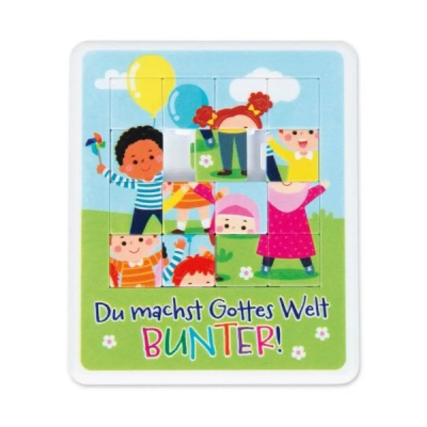 Lustiges Retro Spiel: Kniffliges Schiebepuzzle für Kinder mit 15 beweglichen Teilen und einem Stopper.
