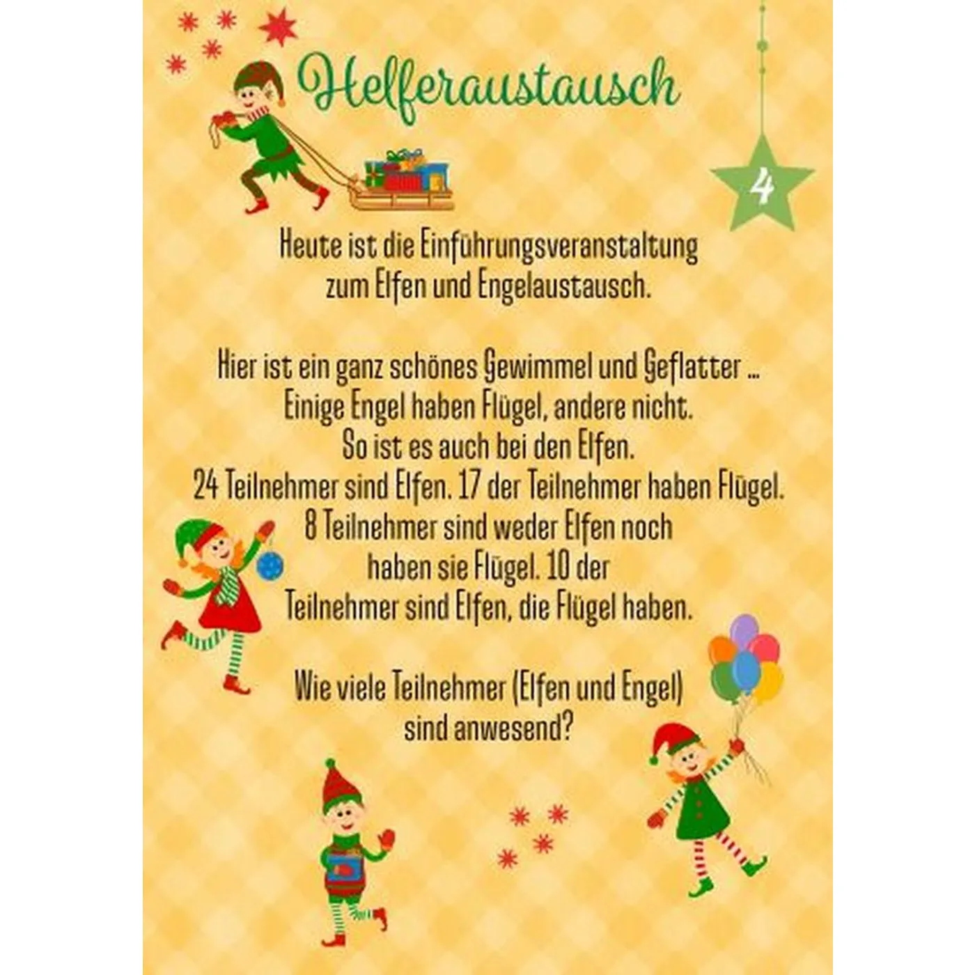 Ein Weihnachtskalender für Erwachsene und ältere Kinder bzw. Jugendliche mit vielen verschiedenen Rätseln und Knobeleien: Worträtsel, Zahlenrätsel, Sudoku, Bilderrätsel, Logicals, ...