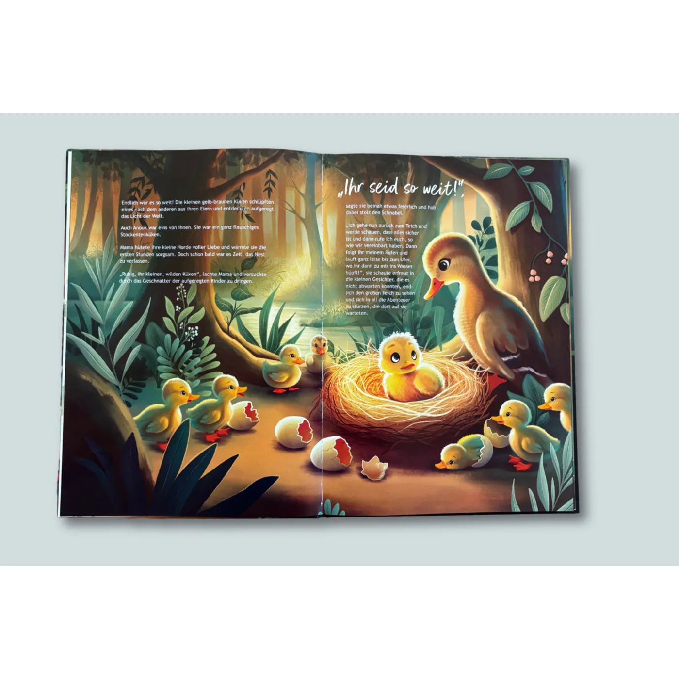 Wir treffen hier Anouk, die kleine Ente, die die Geborgenheit des Nestes liebt und Angst davor hat, den Sprung in den Teich zu wagen. Angst und Zweifel hemmen und verunsichern sie, und es bleibt spannend, wie es weitergeht.
