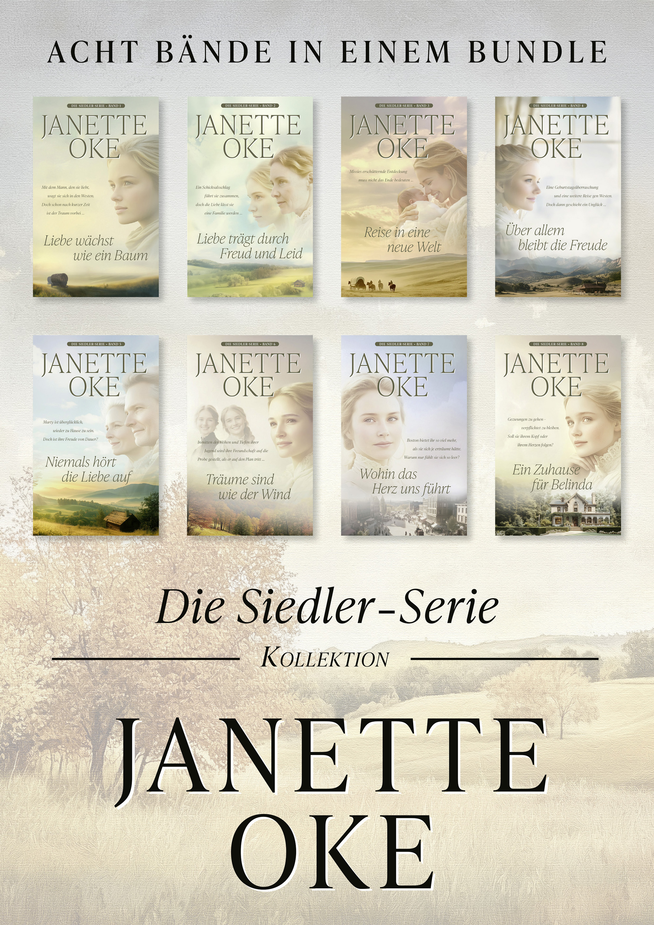 Band 1: Nach dem Verlust ihres Mannes muss die schwangere Marty allein den Sprung in ein neues Leben wagen. Das ungewöhnliche Angebot des Farmers Clark Davis eröffnet ihr eine neue Perspektive. Zögernd lässt sie sich auf das Leben an seiner Seite ein - und erkennt, dass es auch für sie eine hoffungsvolle Zukunft gibt. Band 2: Clark und Marty kämpfen für ihre wachsende Familie und die Gemeinschaft. Der Glaube an Gott, Zusammenhalt und der Wille, das Unmögliche zu schaffen, geben ihnen die nötige Kraft, um die Herausforderungen des beschwerlichen Farmlebens zu meistern. Eine ergreifende Geschichte über den Mut, gemeinsam neue Wege zu beschreiten. Band 3: Missie und Willie verlassen voller Träume die Heimat, um im Westen ein neues Leben zu beginnen. Doch Heimweh und die Herausforderungen der Wildnis setzen ihnen zu. Kann Missie in dieser rauen Umgebung wirklich glücklich werden? Band 4: Das ersehnte Wiedersehen mit ihrer Tochter Missie wird für Marty und Clark von einem schweren Unglück überschattet. Ein dramatischer Wettlauf gegen die Zeit beginnt, als Clark in einem Minenunglück in Lebensgefahr gerät. Band 5: Als Marty erneut schwanger wird, ahnt niemand, dass auch Dunkelheit ins Leben der Familie tritt: Lukes Frau Kate verliert ihr Baby. Im Angesicht des Leids wird ihr Gottvertrauen auf eine harte Probe gestellt. Band 6: Belinda, die jüngste Tochter der Familie Davis, pflegt die Kranken - und verliert dabei fast ihr Herz an denselben Mann wie ihre Freundinnen. Eifersucht, Sehnsucht und ein neuer Weg bestimmen ihr Leben. Band 7: Auf der Suche nach Erfüllung geht Belinda nach Boston. Doch das Großstadtleben bringt mehr Leere als Glück mit sich. Wird sie erkennen, was sie wirklich braucht, um innere Zufriedenheit zu finden? Band 8: In Boston merkt Belinda, dass Reichtum allein nicht glücklich macht. Erst als sie Gott in den Mittelpunkt stellt, findet sie Frieden und den Mut, ihrem Leben eine neue Richtung zu geben.