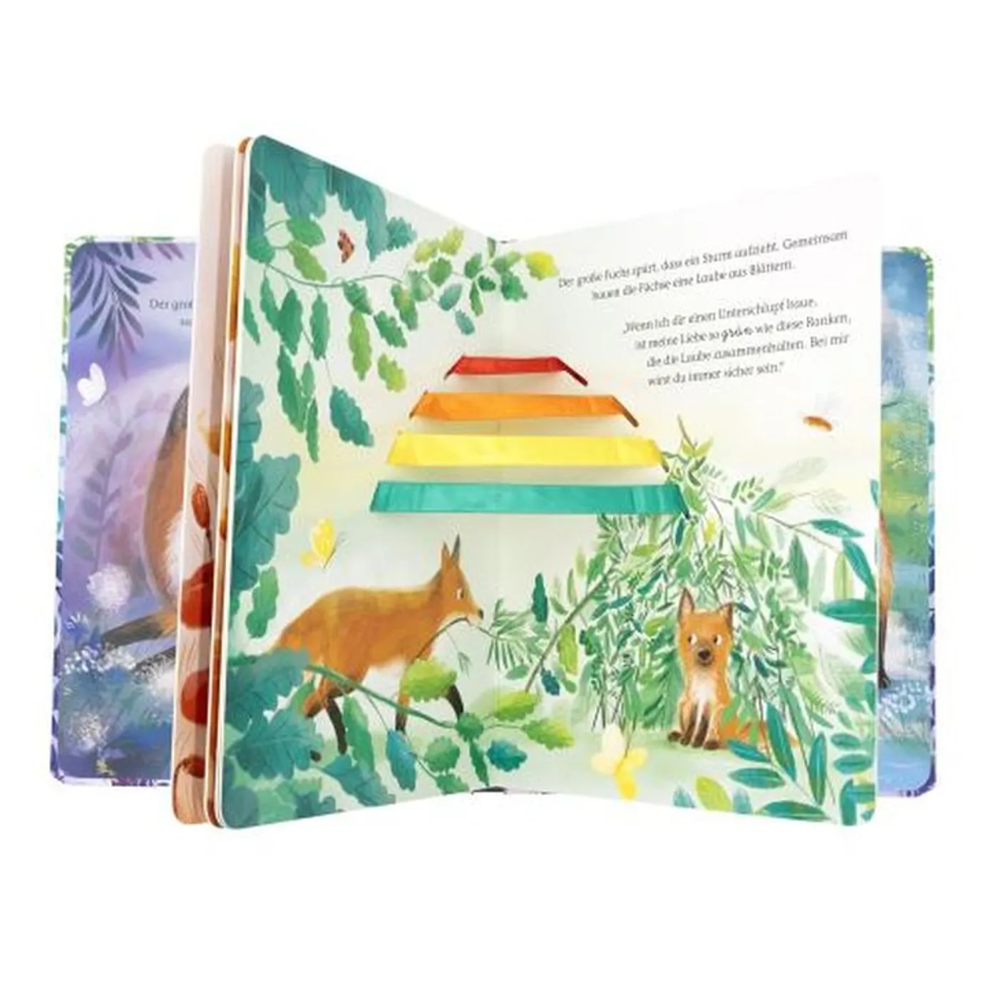 Das Gefühl der Liebe und Geborgenheit wird hier auf vielfältige Weise anschaulich und kindgerecht vermittelt, die bunten Bänder dienen als visuelle und greifbare Seitenumblätterer und sorgen am Ende für ein tolles Gesamtbild.