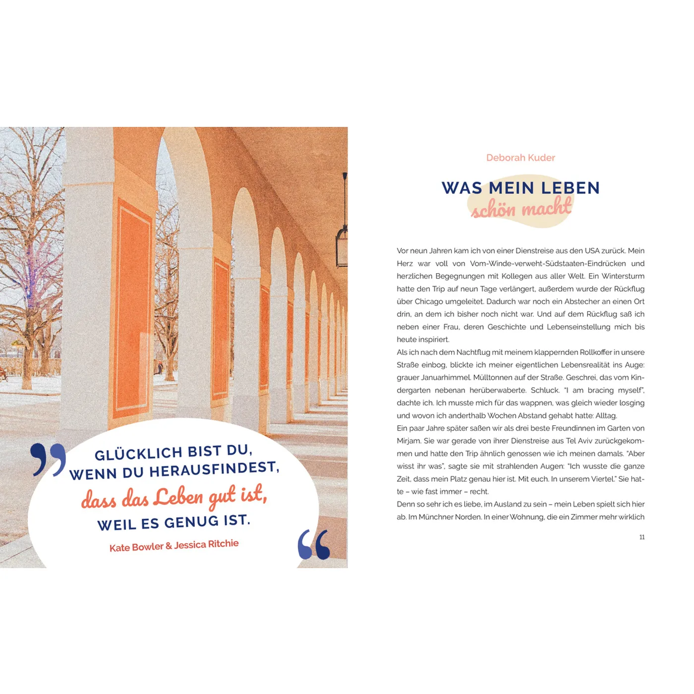 Ich habe es sehr genossen die persönlichen Erfahrungen der Autorinnen zu lesen. Dieses liebevoll und kreativ gestaltete Buch eignet sich auch ideal als ein inspirierendes und schönes Geschenk.