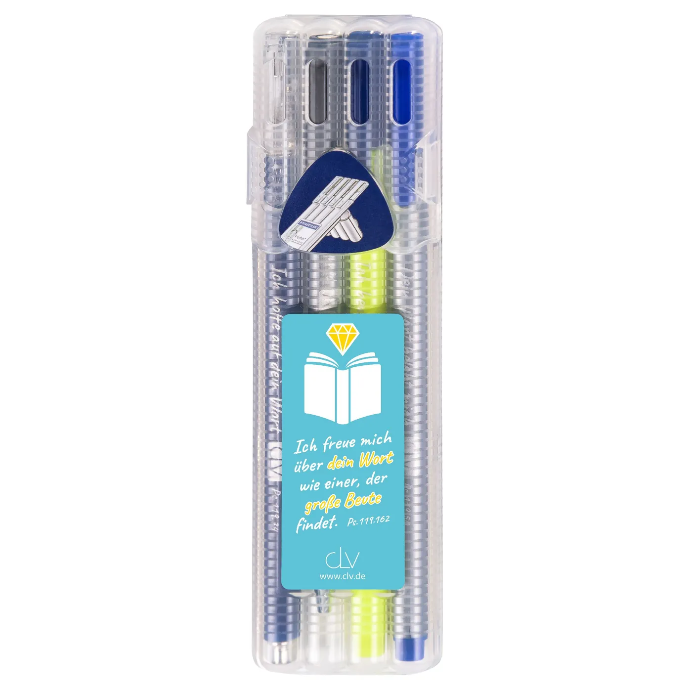 4 Stifte von Staedler mit Bibelversen; im Aufsteller aus Kunststoff