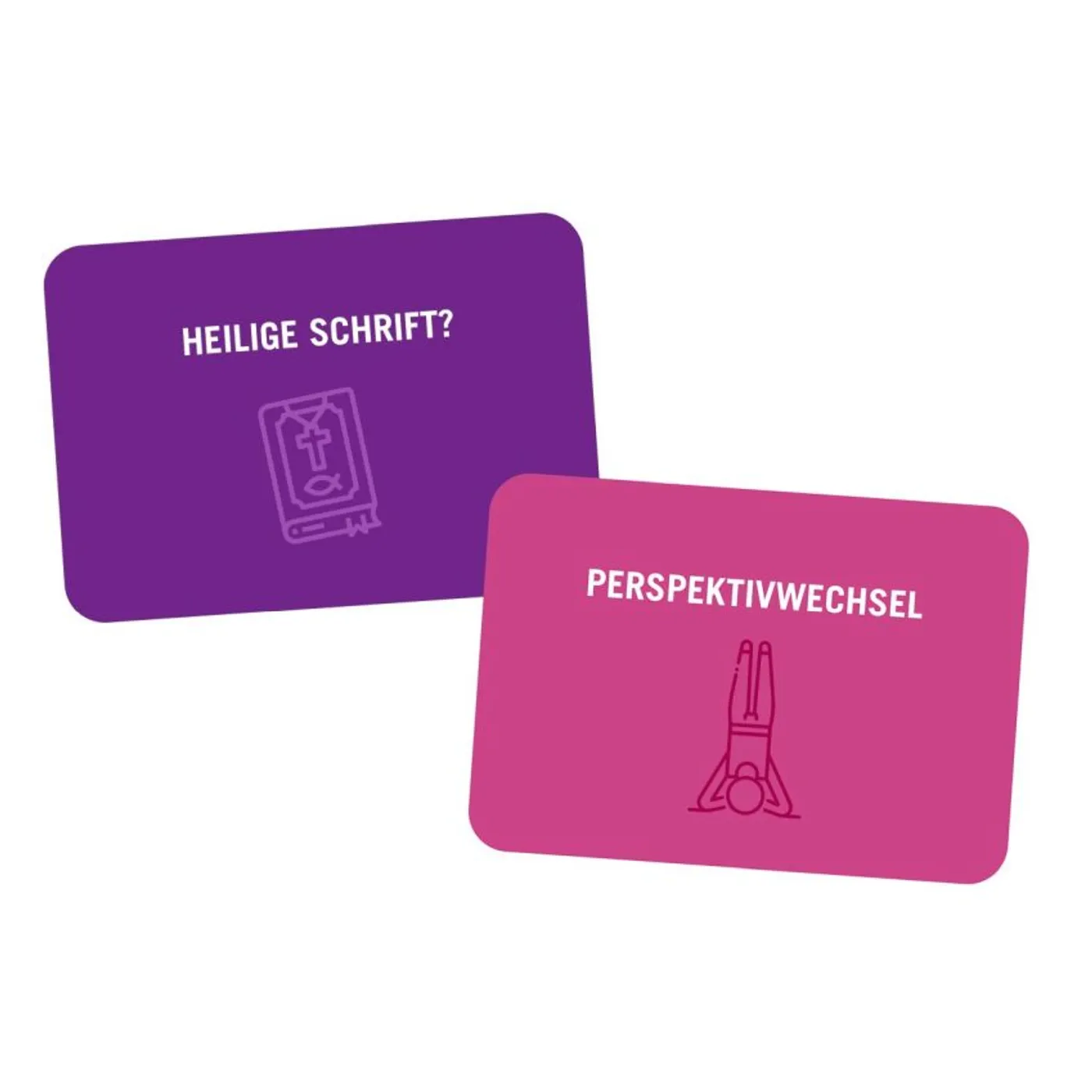 -Bestimmte Fragen sprechen eher ein älteres, akademisch gebildetes Klientel an. Mit manchen Sprichwörtern und Formulierungen können z. B. Konfis nicht so viel anfangen. Es ist daher punktuell eher ein Spiel für Erwachsene. Schade – hier hat man Potenzial verschenkt, finde ich.