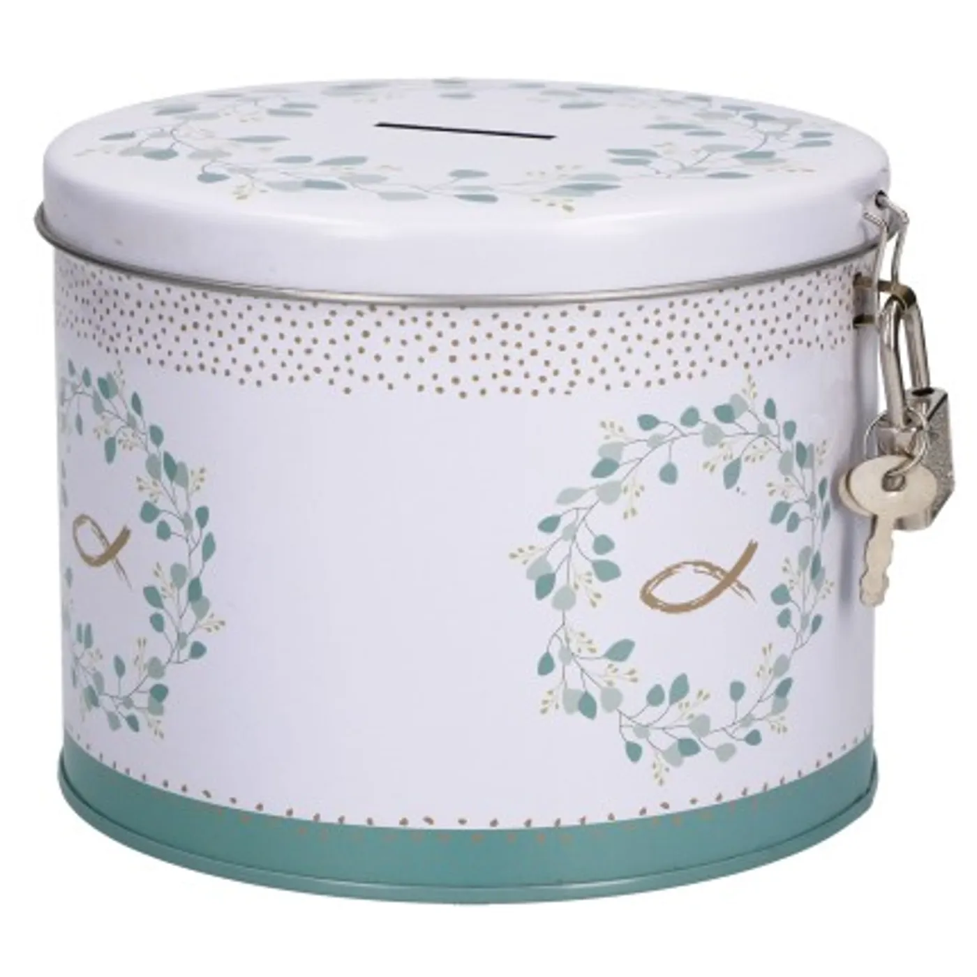In dieser schicken Spardose aus Metall mit kleinem Vorhängeschloss und Schlüssel verbirgt sich nämlich noch eine farbenfrohe Porzellantasse, die natürlich spülmaschinen- und mikrowellenfest ist.