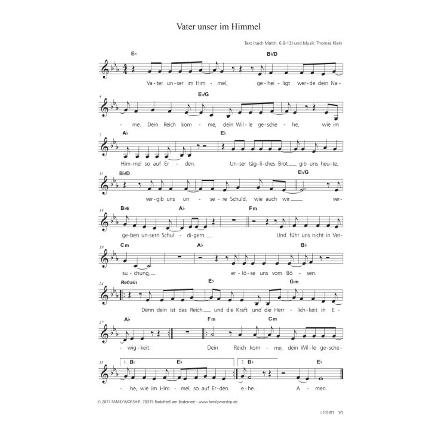 Vater unser im Himmel (diese Variante haben Sie gerade ausgewählt) (modern, einstimmig, mit Akkorden, Es-Dur) Thomas Klein (Komposition) |