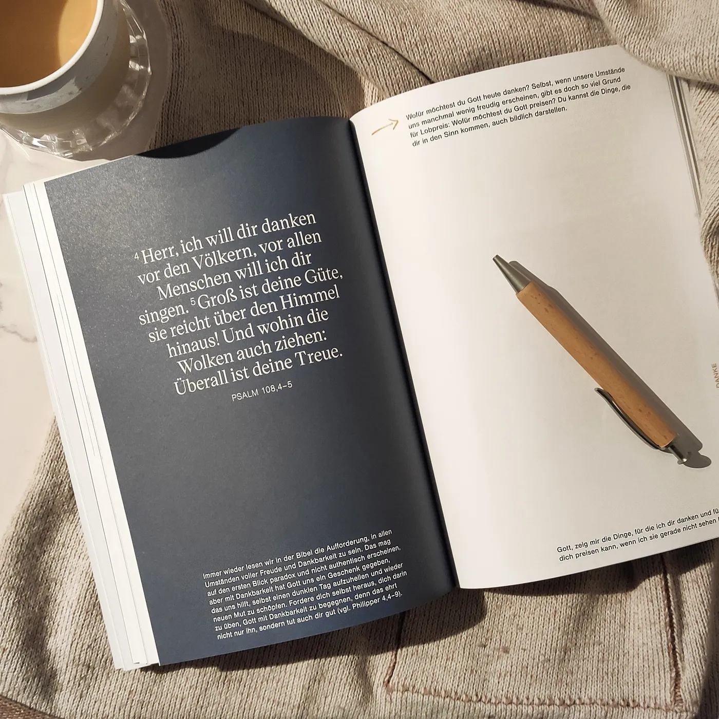 Etwas, das ich so noch nicht gesehen habe. Ein wirklich extrem schön gestaltetes Inspirationsbuch für Zeit mit Gott. Es ist kein wirkliches Andachtsbuch. Ich würde es eher als eine sanfte, ästhetische und kunstvolle Begleitung in die Anbetung beschreiben. Total gelungen. Echt wunderschön. Ich hab es auch schon verschenkt. Ästheten und Typografie-Liebende werden sich wahrscheinlich direkt verlieben. Wunderbare Mischung aus Input, Bibelversen, Fotografien und White-Space. Geniales Ding!
