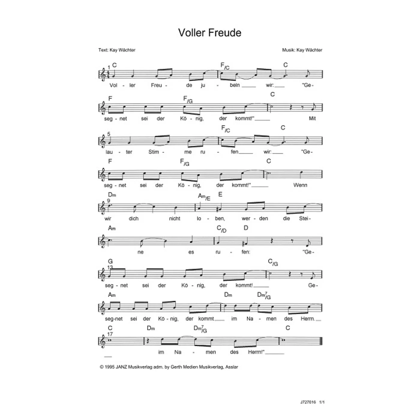 Voller Freude (diese Variante haben Sie gerade ausgewählt) (einstimmig, mit Akkorden, C-Dur) Kay Wächter (Komposition, Text) |