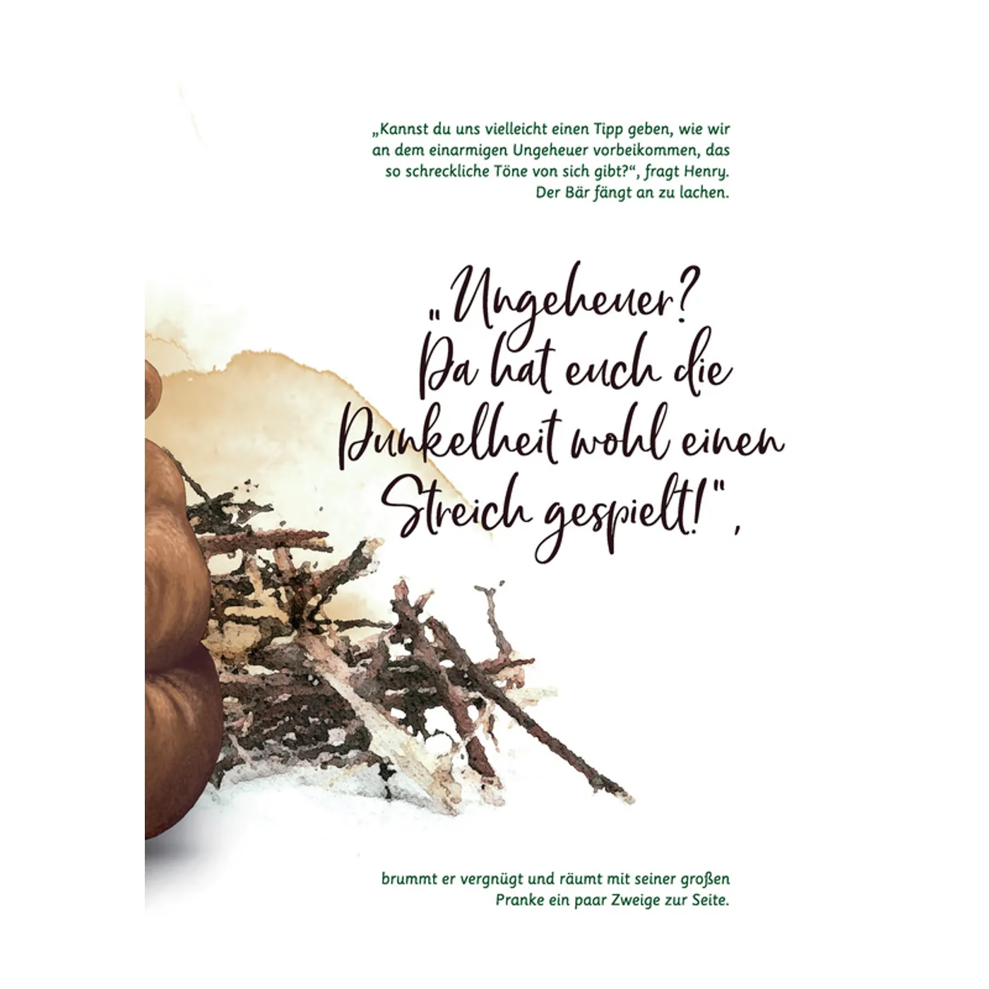Das kleine Eichhörnchen will zurück zu seiner Familie, gar nicht so leicht für den Waschbären, denn er lässt seinen Freund nicht im Stich. Das er dabei aber lernen muss sich zu überwinden, vor allem wenn da auf einmal ein Ungetüm im Wald zu finden ist, damit rechnete er nicht. Aber diese besondere Reise hilft ihm, seinen Mut zu finden. Kommst du mit dem Waschbären mit und staunst wie Mut wachsen kann?