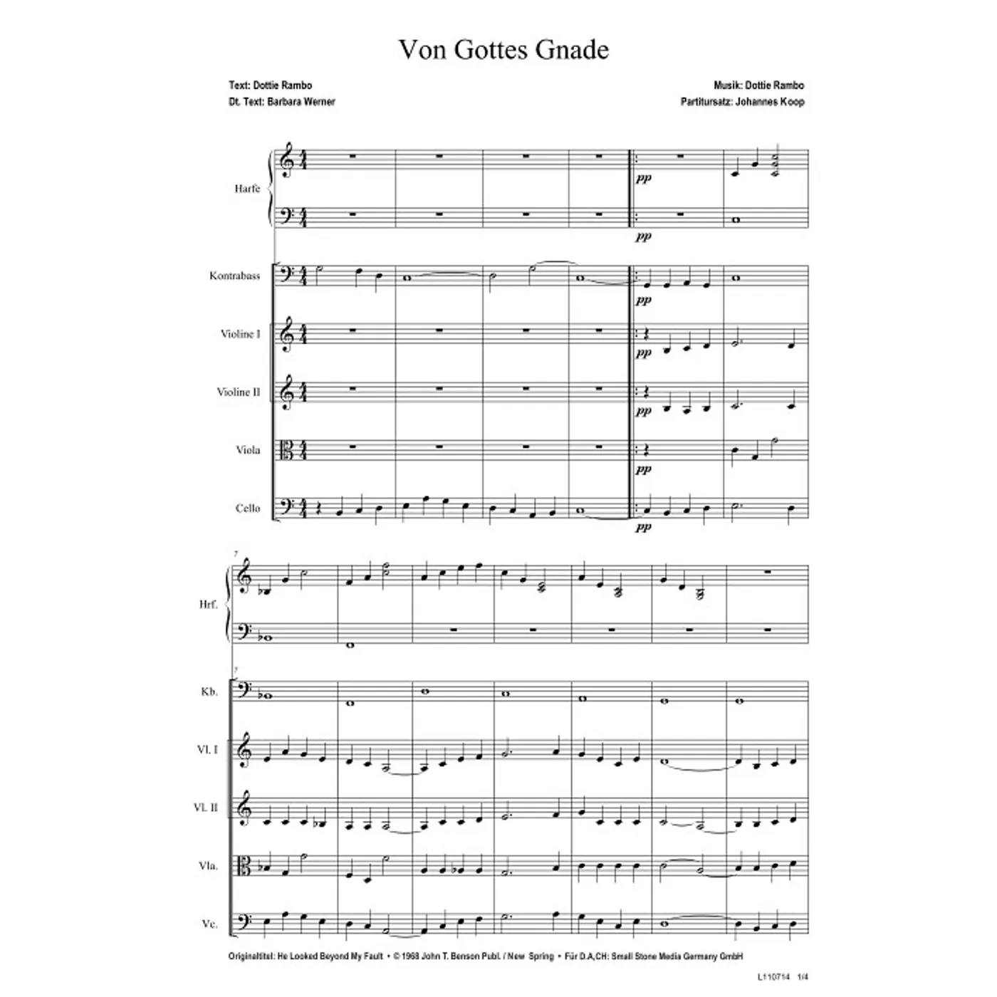 Partitur für Harfe / Kontrabass / Violine 1+2 / Viola / Cello