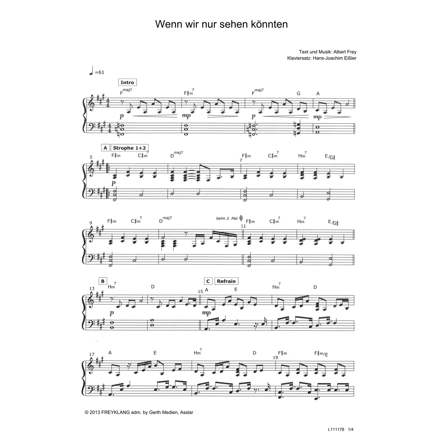(modern, Klavier, Klavierpartitur, Partituren, mit Akkorden, fis-Moll) Albert Frey (Komposition, Text), Hans-Joachim Eißler (Klaviersatz)