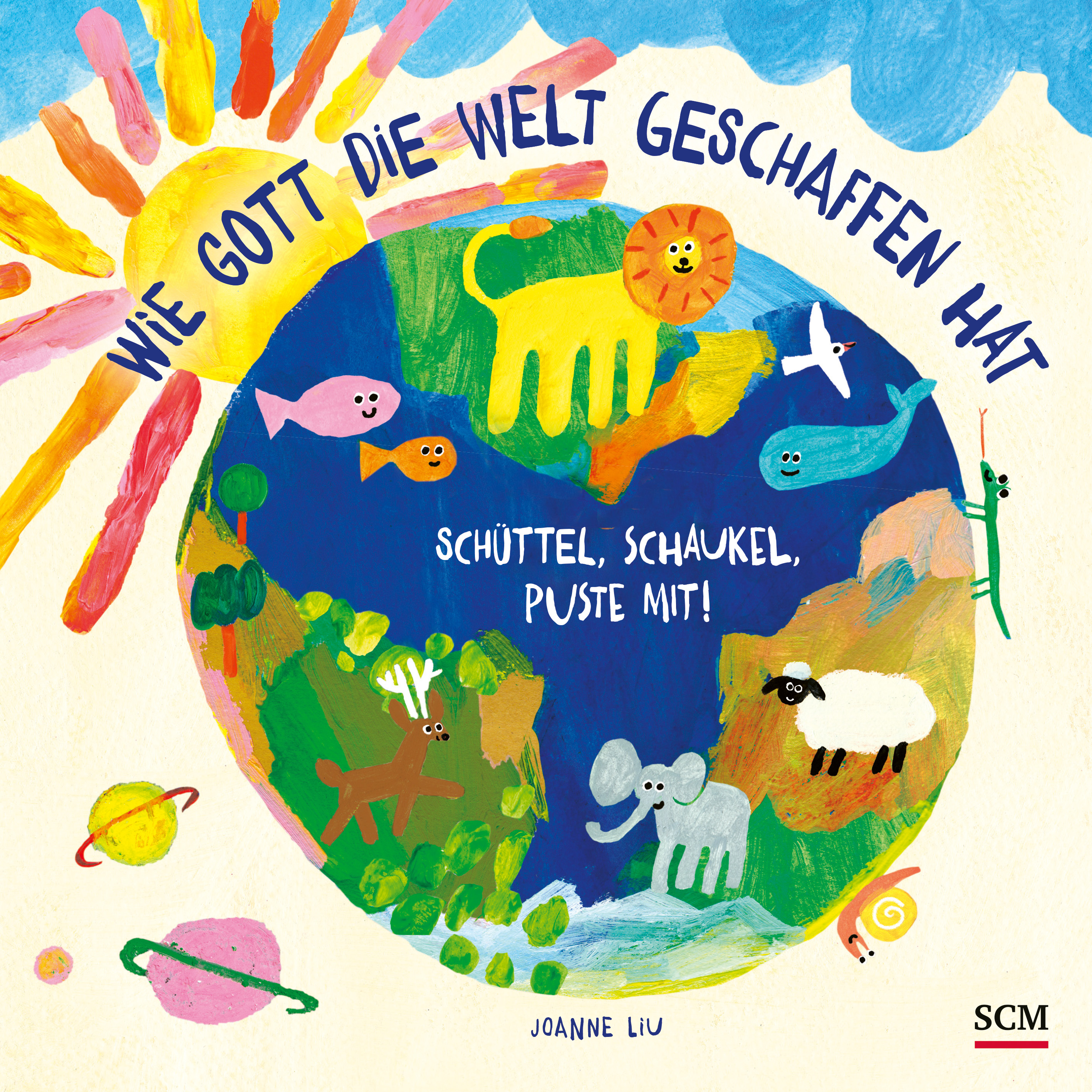 Hinter dem Buchtitel "Wie Gott die Welt geschaffen hat - Schüttel, schaukel, puste mit!" verbirgt sich ein interaktives Mitmachbuch zur biblischen Schöpfungsgeschichte. Es es das Werk von Autorin und Illustratorin Joanne Liu und als großformatiges Hardcoverbuch seit Dezember 2023 im SCM-Verlag erhältlich.
