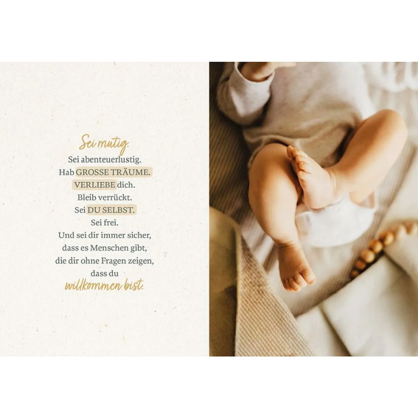 Ein liebevoll gestaltetes Geschenkheftchen zur Geburt in der Reihe „Kleine Grüße“, das gute Wünsche und Gebete für das neugeborene Kind und seine Eltern enthält. Ausgewählte Texte, Segenssprüche und Bibelzitate leihen Worte, mit denen man Staunen und Dank über das Wunder des kleinen Erdenbürgers zum Ausdruck bringen kann. Mit Platz für einen persönlichen Gruß.