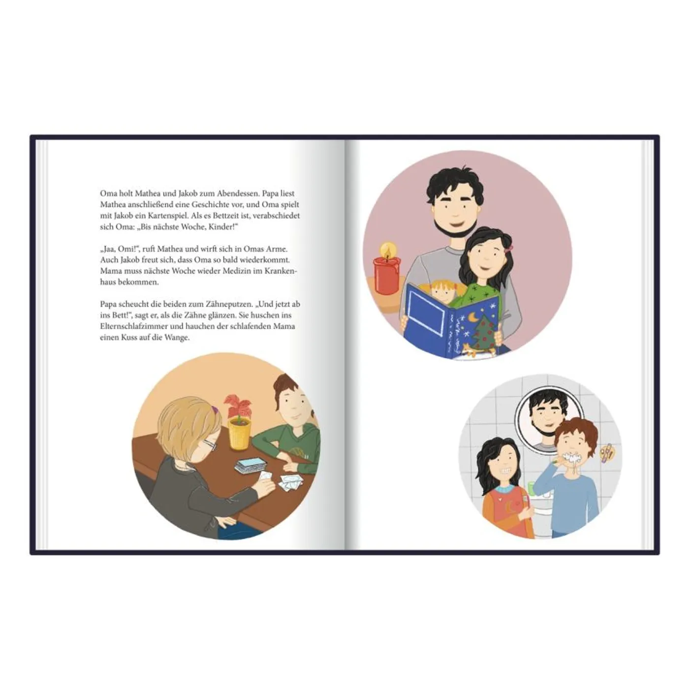 Saskia Heinl beschreibt kindgerecht, was Mathea und Jakob fühlen. Es geht um Angst, Appetitlosigkeit, dem Wissen Gott alles sagen zu können, um Traurigkeit, Rücksicht, Tränen und ganz viel Liebe.