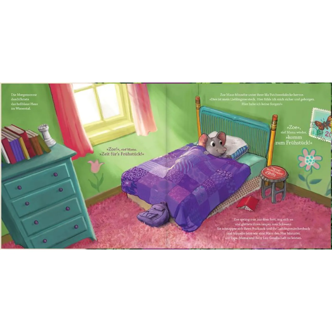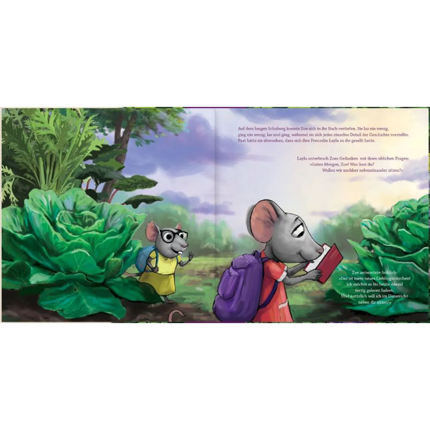 Als Leser begleitet man die Maus Zoe auf einem Schulausflug. Zoe gehört zu den „verträumten“ Schulkindern und als es zu einem Schulausflug kommt, werden alte Ängste in ihr wach. Doch dank ihrer Eltern und einem Bibelwort gelingt es ihr, ihre Angst zu überwinden. „Anstatt sich zu sorgen, bemerkte Zoe auf dem Schulweg, wie viele unterschiedliche Grüntöne es in Gottes Schöpfung gibt. Und sie fühlte sich nicht mehr so allein. Sie wusste, dass Gott bei ihr war, und fühlte seinen Frieden.“