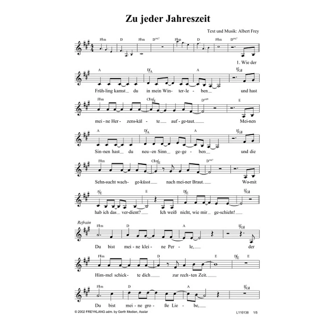 Zu jeder Jahreszeit (diese Variante haben Sie gerade ausgewählt) (Backings, dreistimmig, einstimmig, mit Akkorden, fis-Moll) Albert Frey (Komposition, Text) |