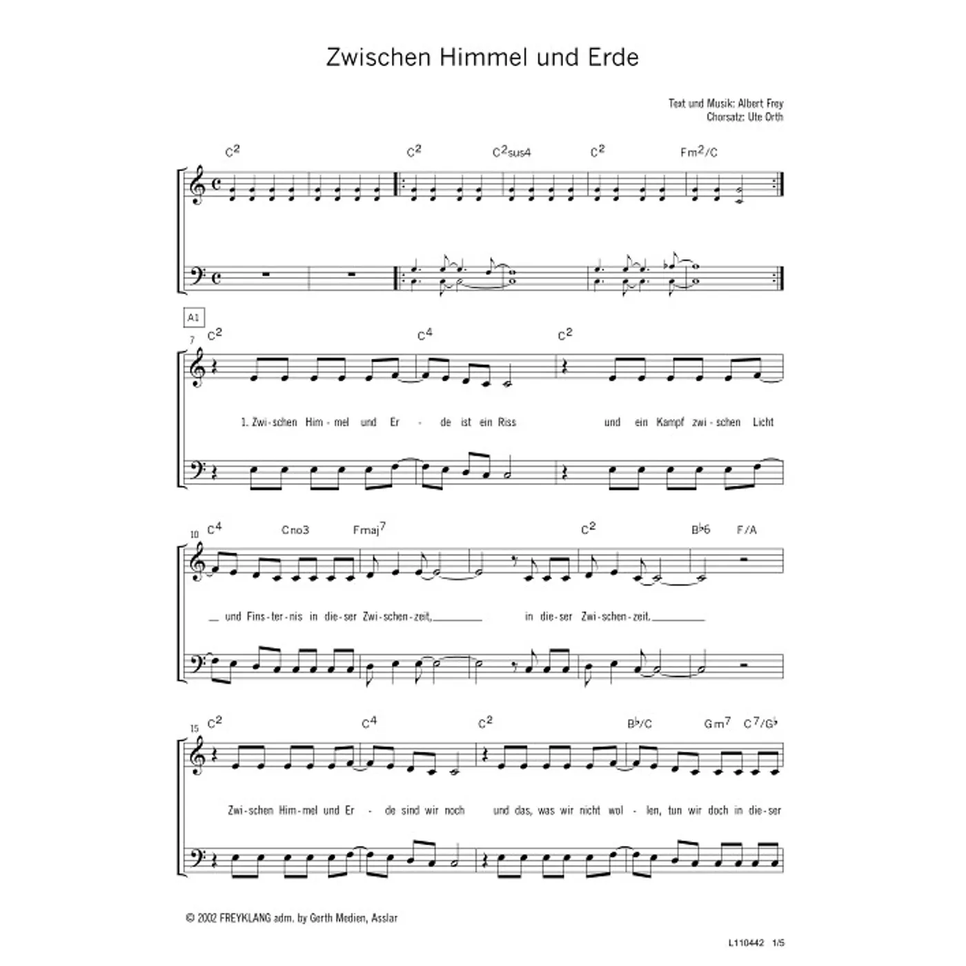 (modern, gemischter Chor, mit Akkorden, vierstimmig, C-Dur) Albert Frey (Komposition, Text), Ute Orth (Chorsatz)